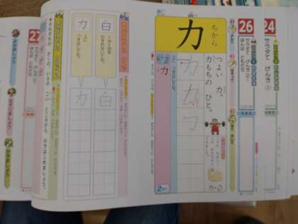 「力」 公開日 2022/10/27 更新日 2022/10/27 お知らせ 1年生は国語科の時間に新出漢字「力」を学んでいました。児童から「かたかなの『カ』に似ている。」という声があがりました。先生から「かたかなの『カ』なのか、漢字の『力(ちから)』なのか、使われている文の前後を見て判断します。」と説明がありました。 その後、漢字の成り立ちに関わる力こぶの話をすると、児童も真似をして力こぶをつくっていました。それでは書き順に気をつけて、漢字ドリルに練習開始です。 いいね(0)