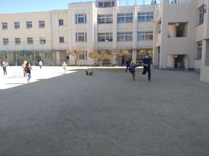 実習生さんとのお別れ会1 公開日 2022/10/28 更新日 2022/10/28 お知らせ 10月4日(火)から4週間、主に2年生に教育実習生が入り込み実習を受けてきました。本日10月28日(金)が教育実習最後の日になります。朝登校すると、黒板に別れを惜しむ絵が描かれていました。 3時限目、実習生と2年生が運動場でお別れの遊びをしていました。増え鬼です。実習の先生は足が速く、なかなかつかまらないようでした。 いいね(0)