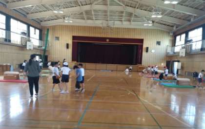 台上前転 公開日 2022/10/28 更新日 2022/10/28 お知らせ 3年生は体育科で「跳び箱運動」に取り組んでいます。本時では台上前転の練習をしていました。まず、場の設定です。みんなで協力して、マット、1・2・3段の跳び箱、踏切板をセットしていました。 手のつく位置、頭や首で気をつけること、踏み切ることの大切さなどを確認してから、自分の力に合わせたコースで練習を始めました。 いいね(0)