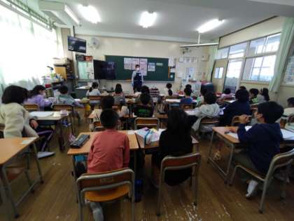 授業の終わる頃、学校にお土産の荷物が届きました。素敵なお土産に、児童はみんな喜んでいました。素晴らしいお話とお土産、ありがとうございました。