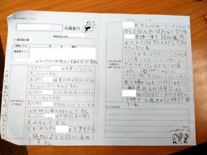 3年生は社会科で「店ではたらく人々の仕事」について学習してきました。本時では、スーパーマーケットで働く方をゲストティーチャーにお招きして、出前授業がありました。まず、児童の質問に一人ひとり答えていただきました。1日に働き始める時刻は開店時刻よりずっと早いこと、数がもっとも売れる商品は牛乳であること、プライベート商品に人気がありよく売れていることなどを教えていただきました。多くの児童は、入口に野菜や果物売り場があることを初めて知ったようです。