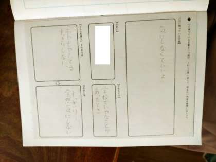 伝えたい心に残る言葉 公開日 2022/11/07 更新日 2022/11/07 お知らせ 5年生は国語科で「伝えたい心に残る言葉」の学習をしています。1組では、まず説明文の文章構成について考えて「始め」「中1」「中2」「終わり」の区切りを書き込んでいました。 その後、心に残る言葉についてスピーチ原稿を作るために、ワークシートに書き込んでいきます。「気にしなくていいよ。」「次からはがんばってね。」励まされと言葉が強く心に残っているようです。 いいね(0)