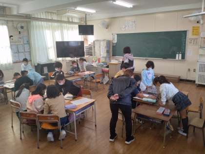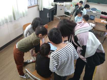 2年2組では学習発表会の準備を着々と進めていました。プレゼンの準備は、どのグループも終えたようです。各グループで、タブレットの画面を見ながら発表原稿を読む練習をしています。練習しながら改善するところを相談しています。