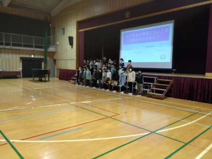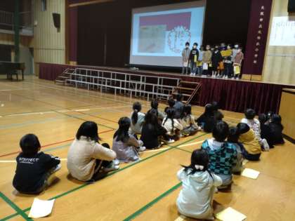 11月18日(金)学習発表会3日目がありました。4年生代表委員の司会から始まりました。会場には3年生だけが待機して、他の学年は教室にいてリモートで観ていました。