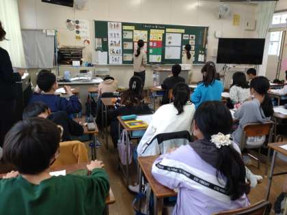 5年1組では栄養指導で「1日のスタートは朝ごはんから」の学習に取り組んでいました。まず、朝ごはんを食べているのと食べていないのとでは、1日のスタートがどれだけ違うのかを考えました。