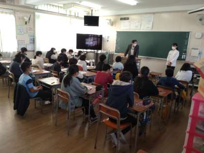 6年生は、学校歯科医の先生と歯科衛生士の方を講師にお招きして、「歯と口の健康教室」を実施しました。
