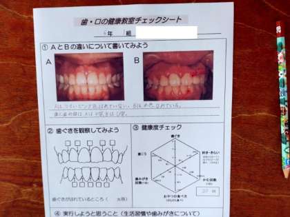 歯と歯茎の間も磨くていねいな歯磨きをする、寝る前に甘いものを食べない生活習慣を正す、噛む回数は30回程度など、歯や歯茎の健康を保つために大事なことを教えていただき、自分の歯の健康チェックをしました。