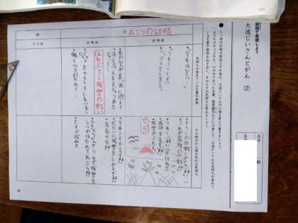 計略前はうまくいきそうだと考えていた大造じいさんの気もちが、計略後どのように変化していったか、物語文の言葉や表現に着目してワークシートに書き込んでいきました。