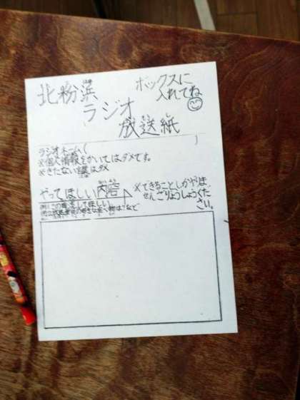 放送室前に「北粉浜ラジオのアンケート箱」が置かれています。児童朝会で放送委員から紹介がありました。一人1枚アンケート用紙が配られています。そこに「お昼の放送で流してほしい曲」「放送委員への質問(『好きな食べ物は?』など)を書いてアンケートボックスに入れると、放送委員ができることなら叶えてくれるようです。