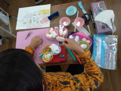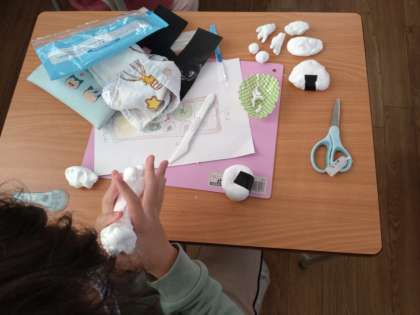 お弁当作り 公開日 2022/11/30 更新日 2022/11/30 お知らせ 2年生は図画工作科で「お弁当作り」に取り組んでいます。1組では、前時にお弁当の下絵を描いています。また、家からお弁当の入れ物や素敵な模様がついた飾り串などの小物をもってきています。本時では、紙粘土でお弁当のおにぎりやおかずを作って、持ってきたお弁当箱に詰めていきます。たこウインナーや唐揚げが次々とでき上っていきます。まだ色は塗れていませんが、美味しそうなお弁当ができそうです。 いいね(0)