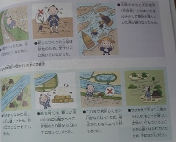 大和川の付け替え工事にかかる費用や人数 公開日 2022/11/30 更新日 2022/11/30 お知らせ 4年生は社会科で「地いきのはってんにつくした人々」について学習しています。本時では、大和側の付け替え工事を、誰がどれくらいの費用をかけて実施したのか調べていました。当時の幕府や藩が出し合わなけばいけないほど費用がかかって、大人数の人手が必要な大工事のようです。これほどの大工事が終了して、洪水が収まり、問題はなくなったのでしょうか? いいね(0)