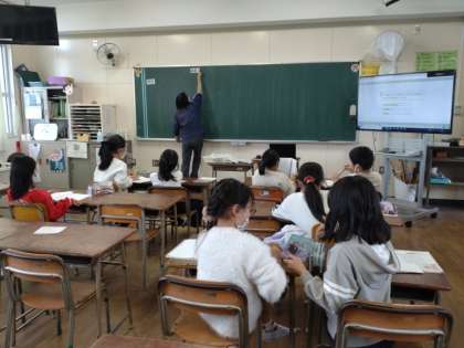 色のついたところの長さを表す 公開日 2022/12/01 更新日 2022/12/01 お知らせ 3年生では算数科で「分数」を学習しています。本時では(2)や(3)の問題を解いていました。1mをもとにする量にして、(2)では「1mをいくつに等分した1つ分」なのかを考えて分数に表すようです。では、(3)の場合、「『1mを3つに等分した2つ分』なので……。」今は、分数の意味や読み方、表し方を理解するように努めています。 いいね(0)