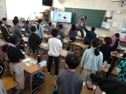I like blue. 公開日 2022/12/02 更新日 2022/12/02 お知らせ 3年生は1時限目、赤と白の折り紙で鶴をたくさん作っていました。本日最後に気蒸されるマシューゲール先生へのプレゼントを作っていました。 そして、2時限目の外国語活動の時間、マシューゲール先生へお世話になった感謝の気もちを伝えました。お返しに、マシューゲール先生はマイクを手に「I like blue.」を歌ってくれました。次は、みんなも立ち上がって一緒に歌い、最後にはポーズを決めていました。 いいね(0)