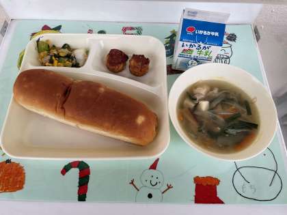12月5日(月)の給食は、おさつパン・牛乳・あげシューマイ・中華スープ・ツナとチンゲンサイの炒めものです。人の手には、目に見える汚れのほかに、目に見えない細菌やウイルスなどがたくさんついています。給食の前や後、休み時間、掃除の後などにしっかりと手を洗うことが大切です。手のひらや手のこう、指の間、親指、指先、つめ、手首など、洗い残しがないように石けんでていねいに洗ってほしいと思います。