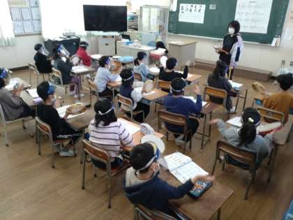 2年生は音楽科で「山の ポルカ」を学習しています。2組では、歌をリズムよく歌っていました。続いて、カスタネットやタンブリンを用いてリズム打ちの練習をしました。カスタネットが「(ウ)・タ・タン (ウ)・タ・タン」とリズムを打つ裏で、タンブリンが「タン・(ウン) タン・(ウン)」とリズムをとらなければいけません。お互いに相手のリズムにつられないように、でも、ずれないようにがんばっていました。