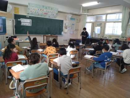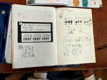 かけ算を つかって 公開日 2022/12/05 更新日 2022/12/05 お知らせ 2年生では算数科で「九九の ひょう」を学習しています。1組では次のような問題を考えていました。かけ算を習っているので「1脚、2脚……。」と椅子を数えるのはナンセンスです。かけ算を利用して、計算で求めるにはどのように考えたらいいのか話し合っていました。「2脚ずつ……。」「3脚ずつ……。」「6脚ずつ……。」かけられる数をどう見るかで式は変わるようですが、答えは同じになるはずです。 いいね(0)