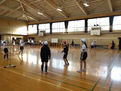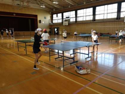 ボール運動(ネット型) 公開日 2022/12/16 更新日 2022/12/16 お知らせ 6年生は体育科で「ボール運動(ネット型)」に取り組んでいます。これまでソフトバレーボールを練習してきましたが、本時で、卓球とバドミントンのグループに分かれて練習していました。卓球でもバドミントンでも、イメージとしてスマッシュを打つつもりなのでしょうが、現実は難しいようです。それでも、何とかラリーを続けようとボールに食らいついていました。 いいね(0)