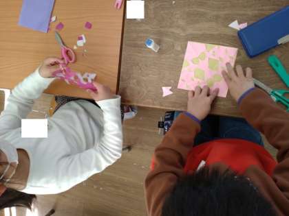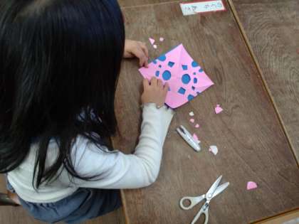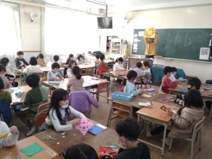 重ね切り模様 公開日 2023/01/17 更新日 2023/01/17 お知らせ 1年生は図画工作科で「重ね切り模様」に取り組んでいました。2枚の折り紙を選んで、そのうち1枚を重ね折りして切り込みを入れていきます。その紙を開いて、もう1枚の折り紙に重ねると……。すてきな模様になりました。児童からも感動の声が聞かれました。仕組みを理解した児童は、重ね折りした折り紙への切込みの入れ方を工夫して、より細かく美しい模様を作っていました。 いいね(0)