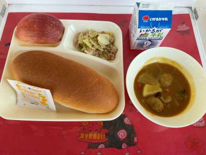 1月20日(金)の給食は、コッペパン・マーマレード・牛乳・ミートボールと野菜のカレーに・ツナとキャベツのソテー・りんごです。寒さが厳しくなってましたが、寒さに負けないうぶな体をつくるために、黄・赤・緑、3食のグループ、栄養のバランスがよい食事をするようにしてほしいです。黄のグループは、体を温めるエネルギーになります。赤のグループは、血液や筋肉をつくり、寒さで使った体力を回復させます。緑のグループは、寒さに対する抵抗力をつけます。