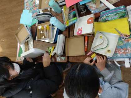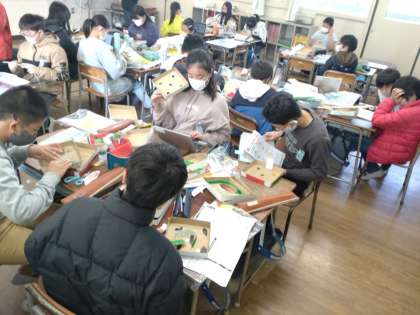 コロかるくんの旅(タワー) 公開日 2023/01/20 更新日 2023/01/20 お知らせ 5年生は図画工作科で「コロかるくんの旅(タワー)」に取り組んでいます。2組では、各階にビー玉が落ちる穴を開けたり、ビー玉が通る通路を作ったりしていました。ゲームのイメージがわいてきたのでしょうか。最初考え込んでいましたが、いざ作り出すと次々にいろいろと、アイディア豊富な仕掛けを考えだして作っていました。超難関のゲームができるのを楽しみにしています。 いいね(0)