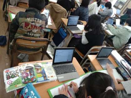ステンドBOX 公開日 2023/01/20 更新日 2023/01/20 お知らせ 4年生は図画工作科で「ステンドBOX」作りに取り組んでいます。ボックスの側面を切り抜いてカラーフィルム、その下にシルバーのシートをのぞかせるので、きらきら美しい絵や模様に仕上がります。本時では、下絵を厚紙に描き込んでいました。タブレットや絵本で調べていました。ものさしを使って、幾何学的な模様を書いている児童もいました。飾った部屋がキラキラ映えるような素敵なステンドBOXを作ってほしいと思います。 いいね(0)