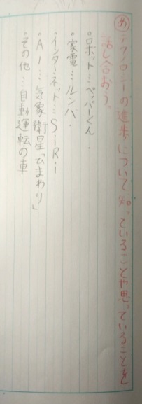 テクノロジーの進歩について考えよう 公開日 2023/01/24 更新日 2023/01/24 お知らせ 5年生は国語科で「テクノロジーの進歩について考えよう」の学習をしています。1組では、まず自分たちが知っているテクノロジーについて出し合っていました。「ペッパーくん」や「ルンバ」など、みんないろいろ知っているようです。 「洗濯機」「電子レンジ」という意見が出ました。確かに、最近は従来の機能をはるかに超える製品ができているようです。 いいね(0)