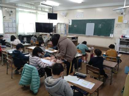 「才」 公開日 2023/01/24 更新日 2023/01/24 お知らせ 2年2組では国語科の時間に、新出漢字「才」を学習していました。3画目で始筆の場所がわかりにくいようです。続いての「読みかえの漢字」を含めてできた児童が手を挙げて先生に合図していました。花丸をもらった児童はとても嬉しそうでした。 この後、3学期の漢字がんばりカードが配られました。2年生の漢字をしっかりマスターして3年生に上がってほしいです。 いいね(0)
