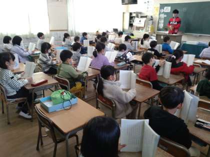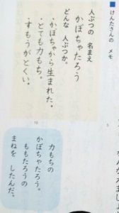 おはなしを かこう 公開日 2023/01/24 更新日 2023/01/24 お知らせ 1年生は国語科で「おはなしを かこう」を学習しています。 考える順番は(1)お話に登場する人物について考える。(どんなことが得意か、何が好きか……) (2)考えた人物がお話の中でどんなことをするのか考え、自分だけのお話をつくる。 まずは、教科書に載っている例「かぼちゃたろう」を読んで参考にします。楽しいお話をつくってほしいと思います。 いいね(0)