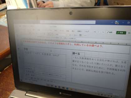5年生は社会科で「情報を生かして発展する産業」について学習しています。2組では、天気予報など気象情報を提供する会社が、どのような情報を入手し、どのように利用しているのかを考えてきました。天気や気温によって、その日によく売れる商品が変わってくるようです。これまで、気象情報を提供する会社やそのサービスを受ける会社の取り組みを調べてきました。自分たちが学習してきて、わかったことや気づいたことを話し合っていました。