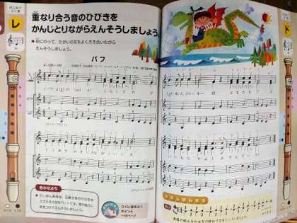 3年生は音楽科で「パフ」「エーデルワイス」を学習しています。まずは、各自で楽譜を見ながらリコーダーの練習をしていました。「パフ」では、低い音が続くので、強く息を吹き過ぎないように気をつけます。「エーデルワイス」では、出だしの「ミーソ レー」「ドーソ ファ」など音が急に高くなったり低くなったりするフレーズがあり滑らかに吹かなければいけません。