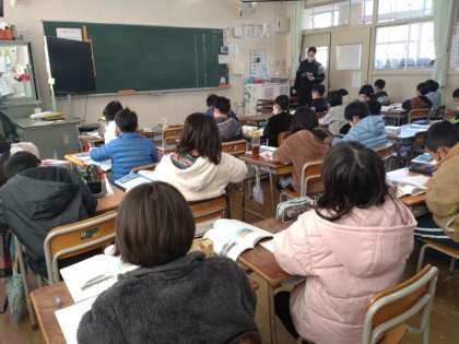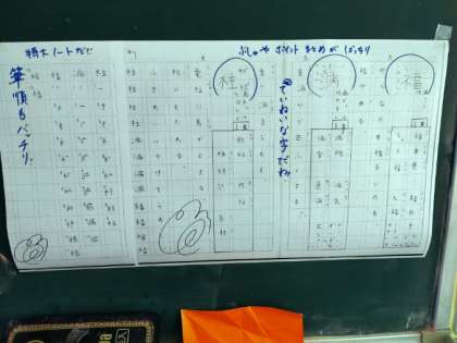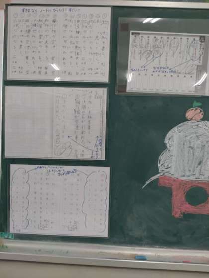 教室の後ろには、上手にまとめられている宿題ノートのコピーが掲示されていました。漢字の宿題をただ漠然と映しているのではなく、とても工夫していてわかりやすいと感心しました