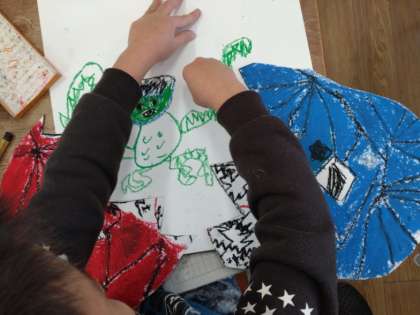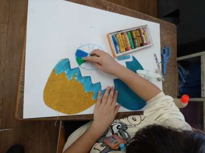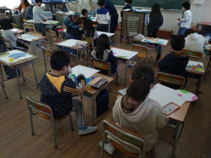 不思議な卵 公開日 2023/02/01 更新日 2023/02/01 お知らせ 2年生は図画工作科で「不思議な卵」を描いています。1組では、前時から描いている卵を割った状態にして切り取っていました。どの卵も素敵な模様がついていました。 そして、卵の中から何かが生まれる絵を描いていました。卵の中から、浮き輪などが見える海が現れたり、面白い怪獣が飛び出したりして、想像力を豊かにして楽しい絵を描いていました。 いいね(0)