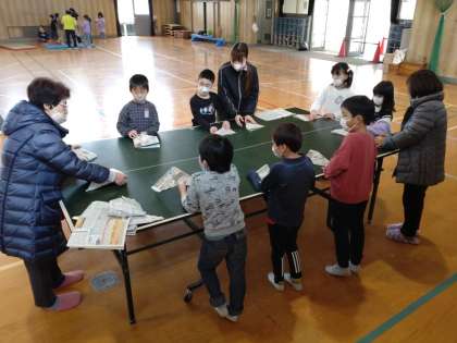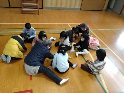 精一杯活動した2時間が終わり、みんなでお礼を言いました。生涯学習ルーム・地域の皆様、本日は昔遊びの楽しい体験をさせていただきありがとうございました。