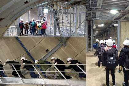 見学、食事の後は、もう一度、地上へと戻ります。繰り返し階段を上ったので、こどもたちもつかれた様子でした。お借りしたヘルメットと軍手をお返しし、スタッフの皆さんにお礼を伝えて、難波駅まで行きました。