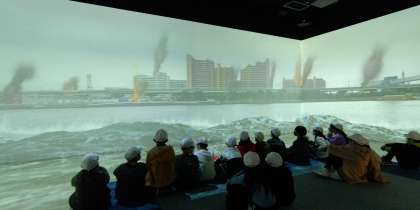 午後の目的地は、つなみ・高潮ステーションです。阿波座駅へと向かい、駅から数分で目的地に着きました。すぐに、3つのグループに分かれ、それぞれのグループごとにスタッフの方がついてくださり、高潮・津波について、詳しく、映像や展示物を通して、具体的に教えていただきました。