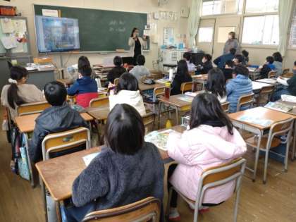 ナターニャ先生の英語の問いかけに、児童は必死でついていきました。
