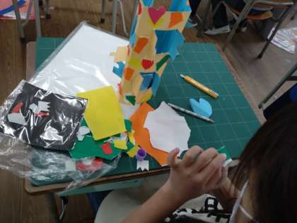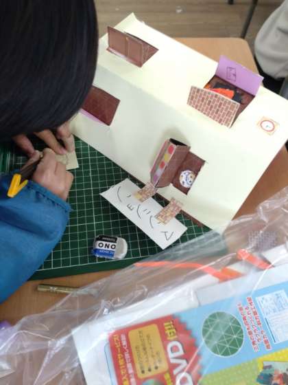 まどから こんにちは 公開日 2023/02/16 更新日 2023/02/16 お知らせ 2年生は図画工作科で「まどから こんにちは」の作成に取り組んでいます。両面色画用紙を2枚重ねて、直方体型のビルを作ります。カッターで切り込みを入れて窓を作っていました。1組では、両面色画用紙の特性を活かして、すてきな建物が完成間近でした。 カッターは正しく使わなければ危ないので、みんな楽しみながらも慎重に作業を進めていました。 いいね(0)