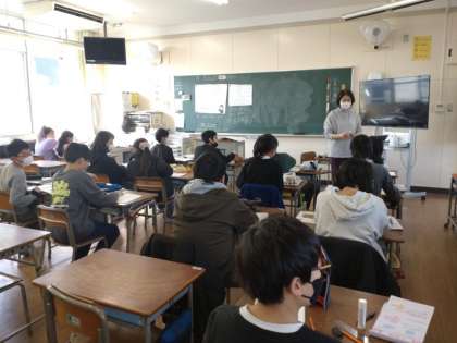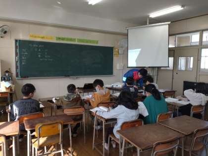 5年生は算数科で「角柱と円柱」を学習してきました。1組では、この単元の練習問題を解きながら、復習をしていました。円柱の展開図側面の縦と横の長さ、底辺の直径を求めます。見取り図と展開図をしっかり見比べて、見取り図のどの部分が展開図のどの部分と対応するのかを考えなければいけません。慎重に両図を見比べて考えていました。