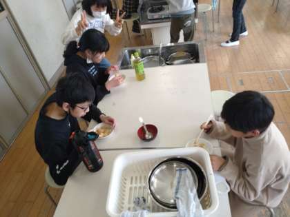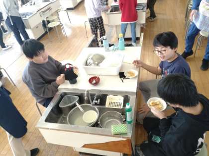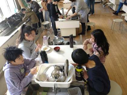 グループで力を合わせて作った白玉だんご、みんな笑顔で美味しそうに食べていました。