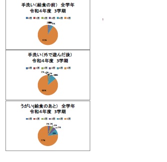2月6日(月)から10日(金)「手あらい・うがいがんばり週間」があり、児童朝会でのリモートや昼の放送で呼びかけたり、手洗い・うがいクイズが出題されたり健康委員会児童が中心となって取り組みました。集計結果は次の通りです。