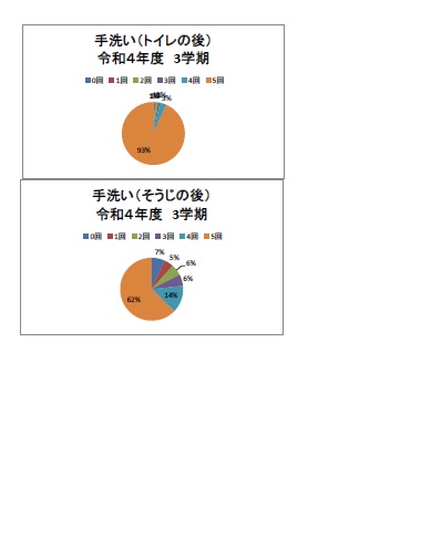 寒い日が続き、水道水の水がとても冷たく感じる時期の取組でしたが、感染症予防を意識して取り組んでました。掃除の後の手洗いが不十分でしたので、今後も引き続き指導してまいります。