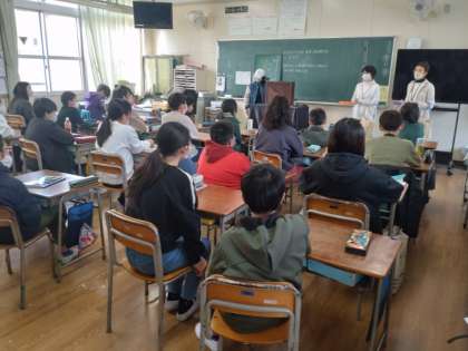 朝の読み聞かせ(5・6年生)2 公開日 2023/03/08 更新日 2023/03/08 お知らせ 6年生は、小学校生活最後の読み聞かせになりました。おひさまクラブの方々から、手作りしおりのプレゼントがあり、一人ひとりに手渡ししていただきました。最後に6年生から6年間お世話になったお礼の気もちを伝えました。 おひさまクラブの皆さん、ありがとうございました。子どもたちがたいへんお世話になりました。来年度もよろしくお願い申しあげます。 いいね(0)