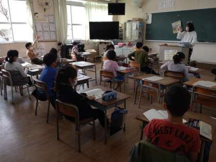 2年生は国語科で説明文「あなの やくわり」を学習しています。本時では、まず本文で取り上げられた「穴が開いているもの」について思い出しました。この後、身の回りで「穴の開いているもの」をもっと探して、なぜ穴が開いているのかを考えていきます。