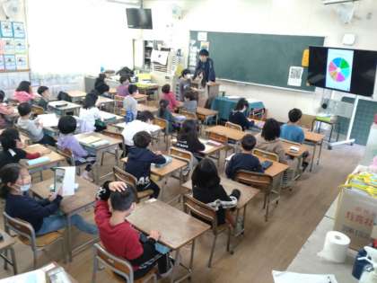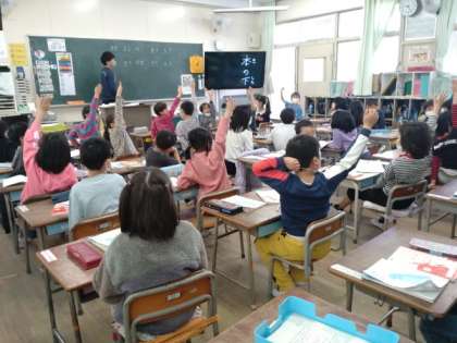お話ルーレット・漢字の間違い探し 公開日 2023/03/10 更新日 2023/03/10 お知らせ 1年生は、朝タイムに毎日数名ずつ前に出てお話をすることになっています。テーマはるーーれっとで決めるようです。「最近うれしかったこと」「昨日の晩あったこと」などです。そのテーマが話しやすいのでしょうか? 別の授業で、たくさんの児童が勢いよく挙手をしていました。漢字の間違い探しをしているようです。 いいね(0)