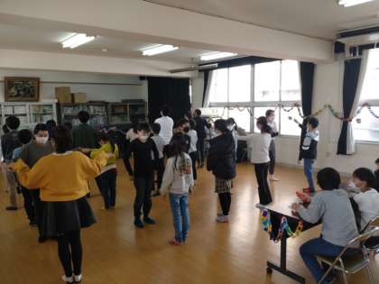 Thank you Teachers. 公開日 2023/03/20 更新日 2023/03/20 お知らせ 5年2組児童から「Thank you Teachers.」という会に数名の先生が招待されました。5時限目は運動場で「先生から逃げろ!!」ゲームと「ドッジボール」、6時限目は多目的室で「ジェスチャーゲーム」と「ビンゴゲーム」で楽しませていただきました。ビンゴゲームでは、ビンゴになるとくじ引きで賞品が当たります。私は素敵なしおりが当たりました。とても楽しかったです。ありがとうございました。 いいね(0)