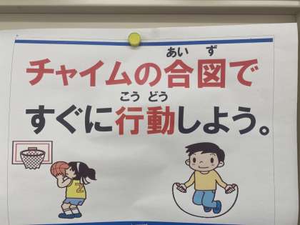4月の生活目標は、「チャイムの合図で、すぐに行動しよう」です。