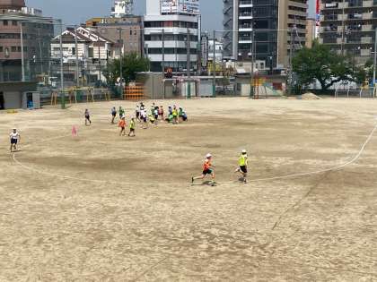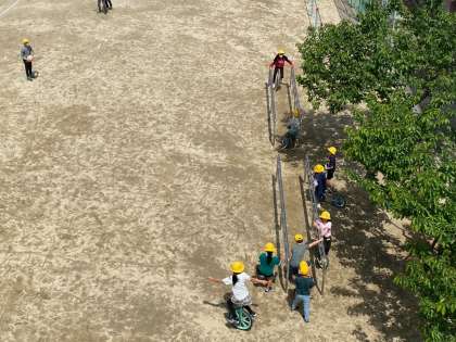 日差しが厳しくなってきました。そんな中、体育の授業で6年生がリレーをしています。6年生ともなれば、走るスピードも速くなり、迫力満点です。