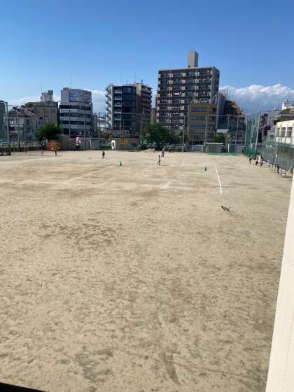 運動場では、いきいき活動に参加している子どもたちが遊んでいます。