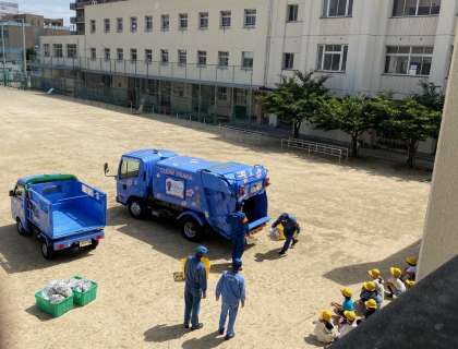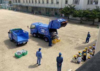 4年生の出前授業で、パッカー車が来てくれました。