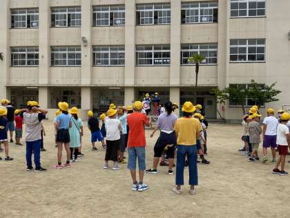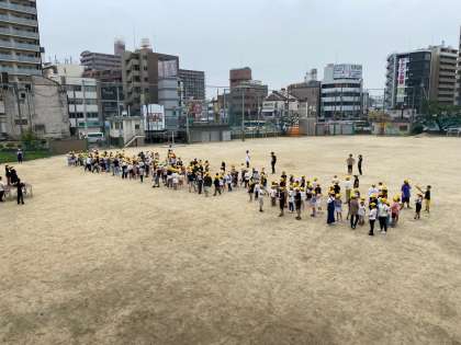 今日の児童集会は、なかよし班で集合しました。